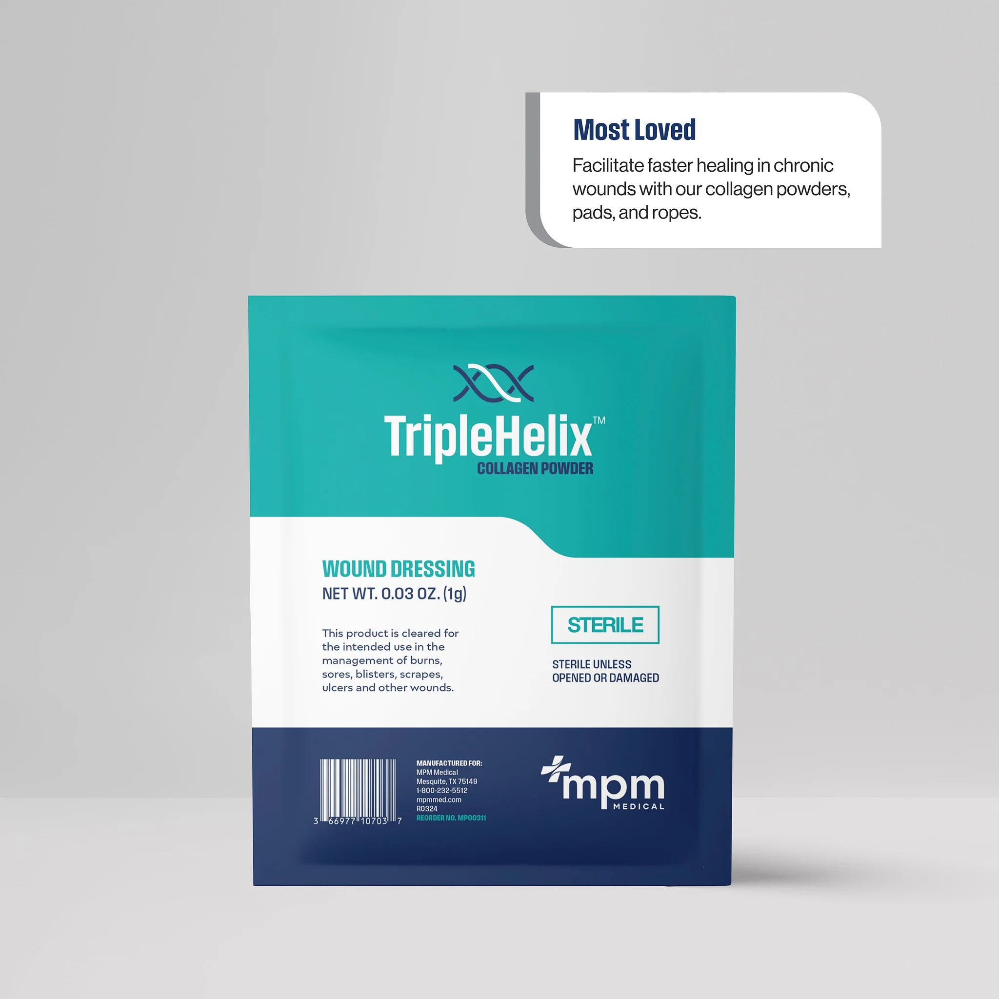 TripleHelix 100% Type I Bovine Collagen is a great addition to your wound care bundle when treating stagnant or hard-to-heal wounds. It is clinically proven for efficacy on chronic diabetic foot and heel ulcers.